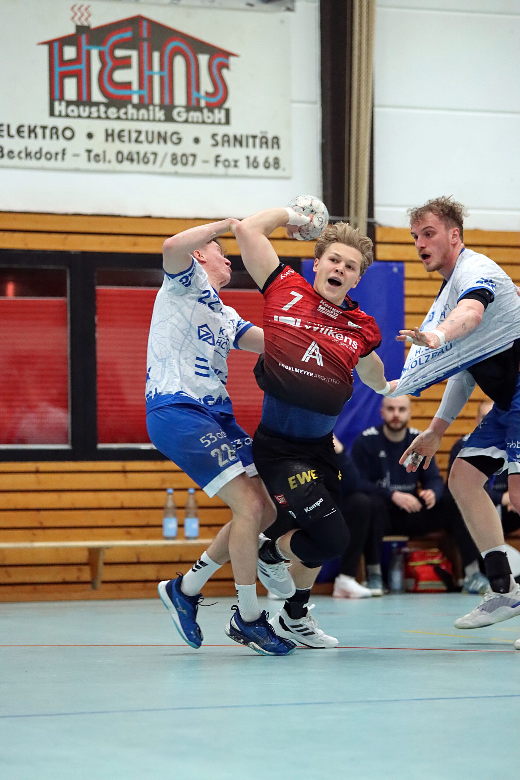 Von Beginn an entwickelte sich eine kampfbetonte Begegnung. Beide Teams schenkten sich nichts: Das Spiel war von hoher Körperlichkeit, vielen Zweikämpfen und zahlreichen Zeitstrafen geprägt. Insgesamt zwölf Zwei-Minuten-Strafen (sechs für Oldenburg, sechs für Beckdorf) sowie eine Rote Karte unterstrichen den hitzigen Charakter der Partie. Spielerisch war es phasenweise kein Leckerbissen, dafür aber ein echter Handball-Fight.