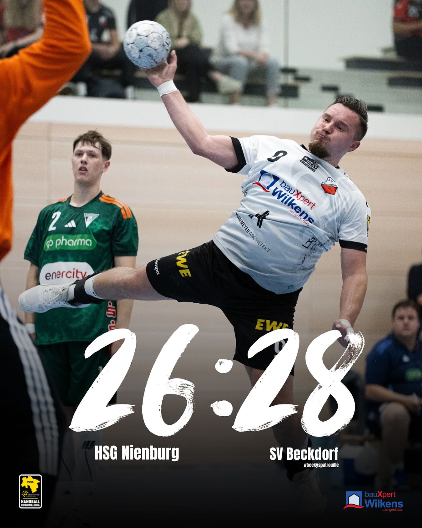 [Nachtrag] Der SV Beckdorf hat seinen starken Saisonstart weiter ausgebaut. Beim Auswärtsspiel in Nienburg feierte die Mannschaft von Trainer Robert Frahm einen hart erkämpften 28:26-Erfolg und damit den vierten Sieg im fünften Spiel. Mit 8:2 Punkten klettert Beckdorf auf den fünften Tabellenplatz der Regionalliga.